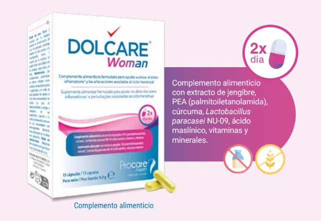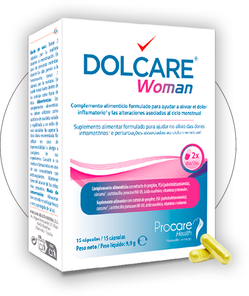 En Procare Health, creemos que el dolor no debería ser un factor limitante durante el ciclo menstrual. Por eso hemos creado DOLCARE® Woman, un complemento alimenticio diseñado para ayudar a aliviar el dolor inflamatorio y las alteraciones asociadas al ciclo menstrual de forma efectiva.